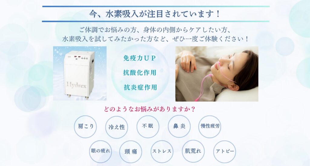 不定愁訴や不眠症、その他ご体調でお悩みの方、ぜひ高発生量のHydrexでご体感ください。